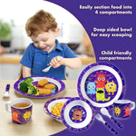 - EASY FOR SELF-FEEDING: Dinnerware and utensils have easy-grip handles, and deep sides to make scooping and grabbing food easy for kids and toddlers!