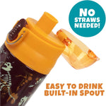 - KID- FRIENDLY REUSABLE WATER BOTTLE: This adorable premium orange Dinosaur themed waterbottle inspires hydration. Reduce your waste with this eco-friendly and resuable bottle for girls and boys!