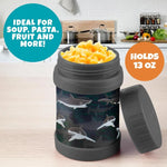 - KID-FRIENDLY REUSABLE FOOD JAR: This adorable premium blue Shark themed food jar keeps food hot or cold for hours! Reduce your waste with this eco-friendly and resuable thermos for girls and boys! Not affiliated with Thermos brand. Great for Ages 3+