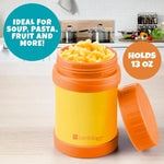 - HOLDS 13 OZ: This food jar holds 13 ounces, with spacious room for a meals worth of soup, fruit, pasta, and more. Measuring 5.5 inches x 3.5 inches, this should fit in most lunch bags and boxes. Making it great storage for Back to School, Day Care, Summer Camp!