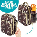 - PERFECTLY SIZED REUSABLE DINOSAUR LUNCHBOX: Great for Back to School, this bag features an external front pocket, an interior mesh pocket, and an expandable waterbottle holder. This spacious lunch tote measuring 10 x 8 x 3.5 inches fits Bentology Bento Box containers, and is compatible with most kid Bento Box brands (sold separately). Food Safe - No Lead, BPA, Phthalates. Suitable for Ages 3+.