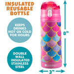 - KID- FRIENDLY REUSABLE WATER BOTTLE: This adorable premium pink Mermaid themed waterbottle inspires hydration. Reduce your waste with this eco-friendly and resuable bottle for girls and boys!