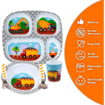 - KID FRIENDLY DESIGN: This construction themed colorful set with moving truck and building graphics will excite your kid for every bite!