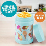 - KID-FRIENDLY REUSABLE FOOD JAR: This adorable premium blue Ice Cream themed food jar keeps food hot or cold for hours! Reduce your waste with this eco-friendly and resuable thermos for girls and boys! Not affiliated with Thermos brand. Great for Ages 3+