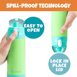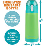 • KID- FRIENDLY REUSABLE WATER BOTTLE: This adorable premium green themed waterbottle inspires hydration. Reduce your waste with this eco-friendly and resuable bottle for girls and boys!